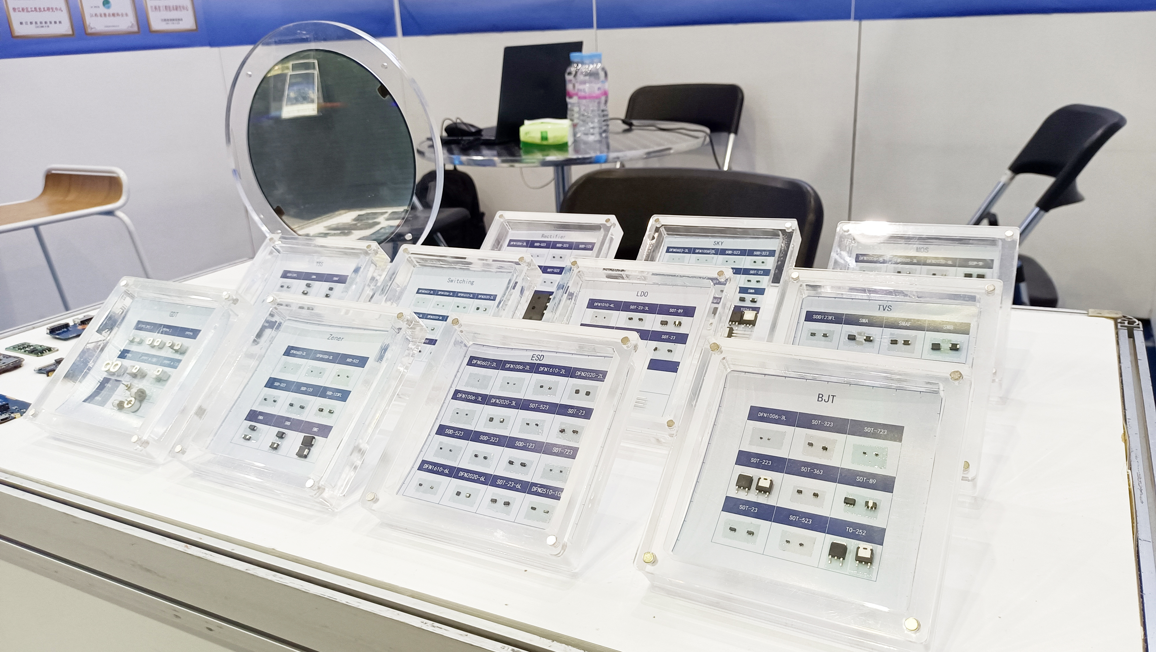今年会微电子展示了多款主营产品,包括保护器件、二三极管和MOSFET、模拟IC等。